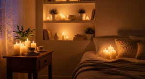 Scent plays a bigger role than people think. A few candles placed around the room can make it feel instantly cozier. Choose soft scents like vanilla, lavender, or sandalwood. Even when they’re not lit, they add to the decor. Group them in small clusters for a styled look. At night, the gentle flicker adds warmth that lighting alone can’t create. It turns the room into a calm, relaxing space that feels comforting in a very subtle way.